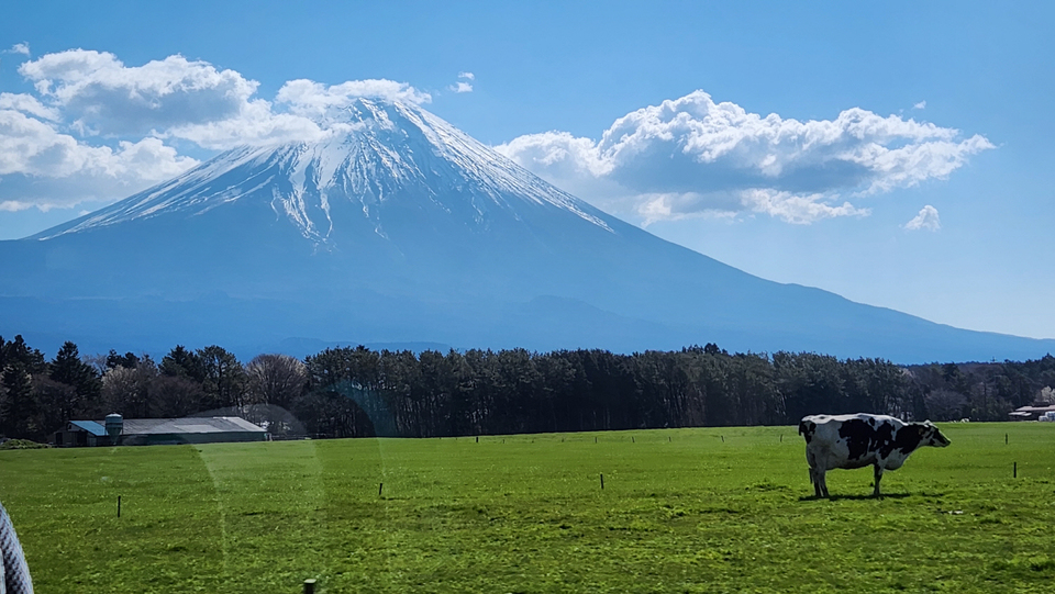 3일차(4월 1일) 아침이 밝았다. 오늘 일정은 오르내리는 산행이 없고 평탄한 길을 걷는다는 설명에 조금은 느긋해진다. 후지산 기슭 조용하고 맑은 물이 흐르는 ‘이노카시라(猪之頭)’마을에서 오늘의 트레킹을 시작한다. 이동하는 도로변에 너른 평원이 펼쳐지고 솟아오른 후지산 아래 푸른 초원에서 한가하게 풀을 뜯는 젖소들의 목가적 풍경이 스쳐 지나간다. 날씨가 쾌청하여 눈부신 주변 풍광이 더욱 빛나고 후지산 정상부에 쉬어가는 흰 구름이 운치를 더해 또 다른 멋스러움으로 다가온다.