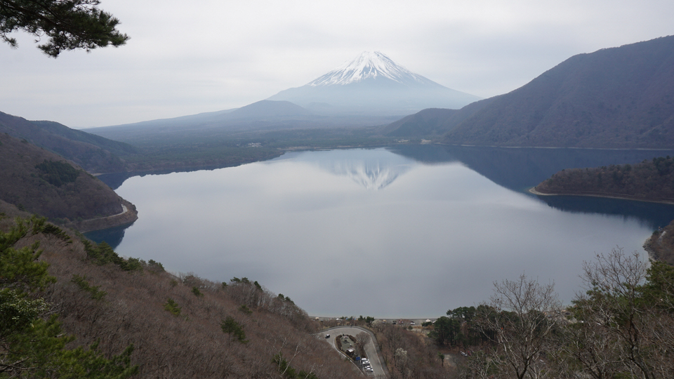천엔전망대가 있는 ‘나카노쿠라도오게(中ノ倉峠)’까지 가는 오르막을 20여 분을 오르면 삼나무 숲이 우거진 산등성이에 닿는다. 삼나무 숲 넘어 아스라이 보이는 만년설을 하얗게 덮어쓰고 있는 일본 남(南)알프스의 모습이 이국의 정취를 만들고 있다. 왼쪽으로 시야가 트이고 모토스(本栖)호(湖)가 눈앞에 보이며 그 위로 후지산의 위용이 보는 이의 마음을 설레게 한다.