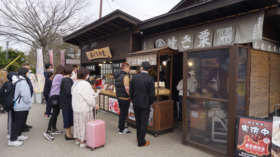 연못 주변에는 오래된 벚나무에 화사한 꽃이 피어나고 돋아난 초록빛 잡초들과 어우러져 더욱 아름다운 마을을 만들고 있다. 마을 골목길에는 이곳 특산품들이 곳곳에 진열되어 눈길을 끌고 ‘오시노핫가이’ 특미(特味)인 ‘쿠사모찌(草もち)’를 즉석에서 굽고 있는 할머니가 연신 뭐라고 말을 붙이며 자랑을 한다. 이 마을이 관광지라 외국인뿐만 아니라 내국인도 많이 찾아와 시끌벅적 골목길을 채우고 시골마을의 정취에 흠뻑 빠져드는 모습이다. 우리 일행들도 맛 나는 음식을 사먹으며 맑은 개울이 흐르는 마을 ‘오시노핫가이’에서의 느긋한 오후 일정을 보냈다.