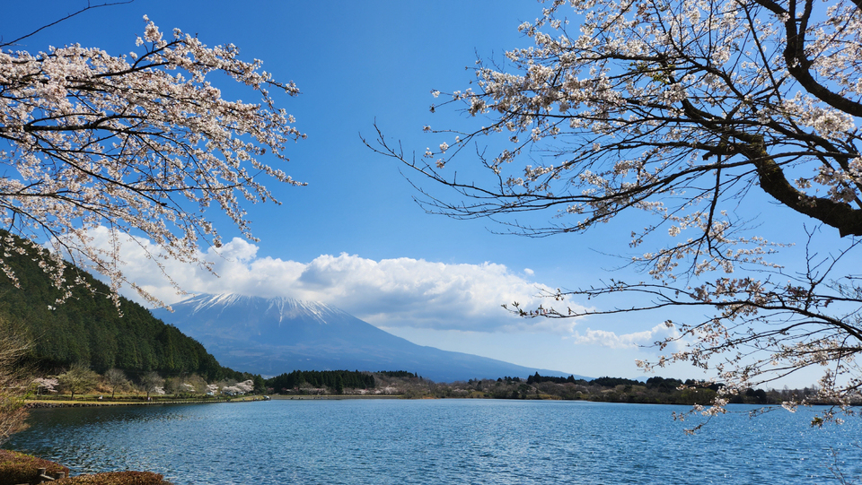 고타누끼습원을 지나 이어지던 전나무숲이 끝나고 화사한 봄 햇살로 눈부신 호수가 한눈에 들어온다. ‘후지5호(富士五湖)’에 들지 않은 인공호수인 ‘타누끼호(田貫湖)’다. 잘 정비된 제방이 길게 이어지고 그 아래 세월을 낚는 강태공들이 봄볕을 쪼이며 앉아있다. 유난히도 푸른 호수와 파란 하늘 아래 흰 구름을 두르고 있는 후지산이 더욱 선명해 보이고 호수 둘레를 감싸고 길게 늘어선 벚꽃들의 향연과 어우러져 길손들의 마음을 흔들어 놓는다.