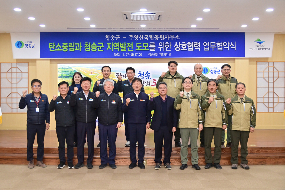 한편, 군은 ‘청송군 탄소중립을 위한 산소버스 보급사업’으로 ‘2024년도 낙동강수계 특별지원 공모사업’에 선정된 바 있으며, 이 과정에서 주왕산국립공원사무소의 적극적인 지원이 있었다. 이러한 경험을 바탕으로 군의 핵심자원인 주왕산 국립공원의 가치를 상호 인식하고, 탄소중립 실현과 지속가능한 지역발전을 도모하기 위해 향후 더욱 긴밀한 협력관계를 구축해 나갈 계획이다.