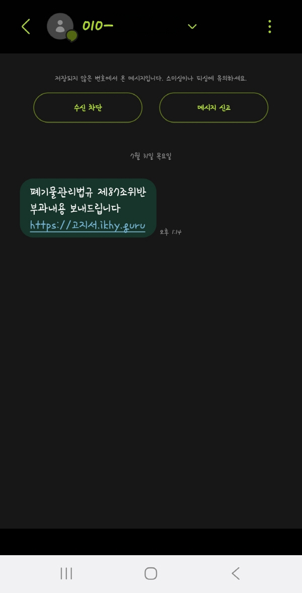 폐기물관리법 위반 명목 악성 앱 설치 유도…문자 발송 안 해